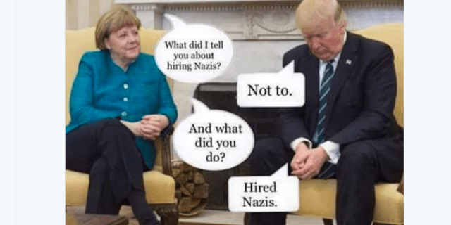 People have been having lots of fun with Donald Trump’s car crash of a meeting with Angela Merkel. Trump was widely criticised for refusing to shake the German chancellor’s hand when they met at the White House – he could barely bring himself to look at her