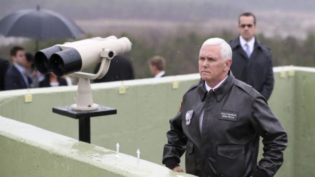 Supposedly, Pence wasn’t meant to go outside during his visit to the DMZ, but this man LIVES FOR THE FUCKING DANGER, and for easily manipulated photo ops.